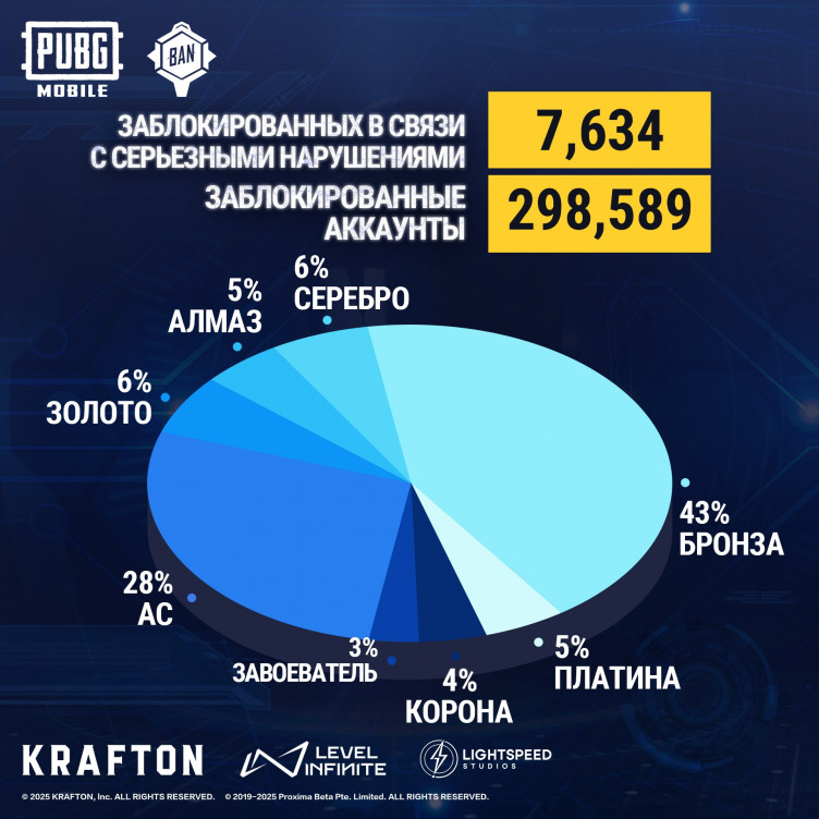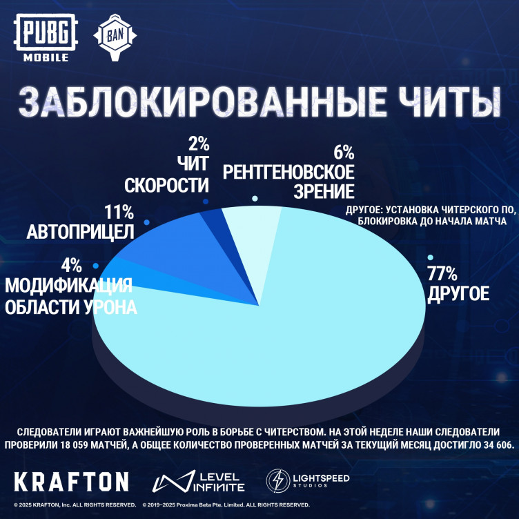 Разработчики мобильной версии PUBG забанили 298 тысяч аккаунтов читеров (и больше семи тысяч устройств) за период с 10 по 16 октября 2025 года.