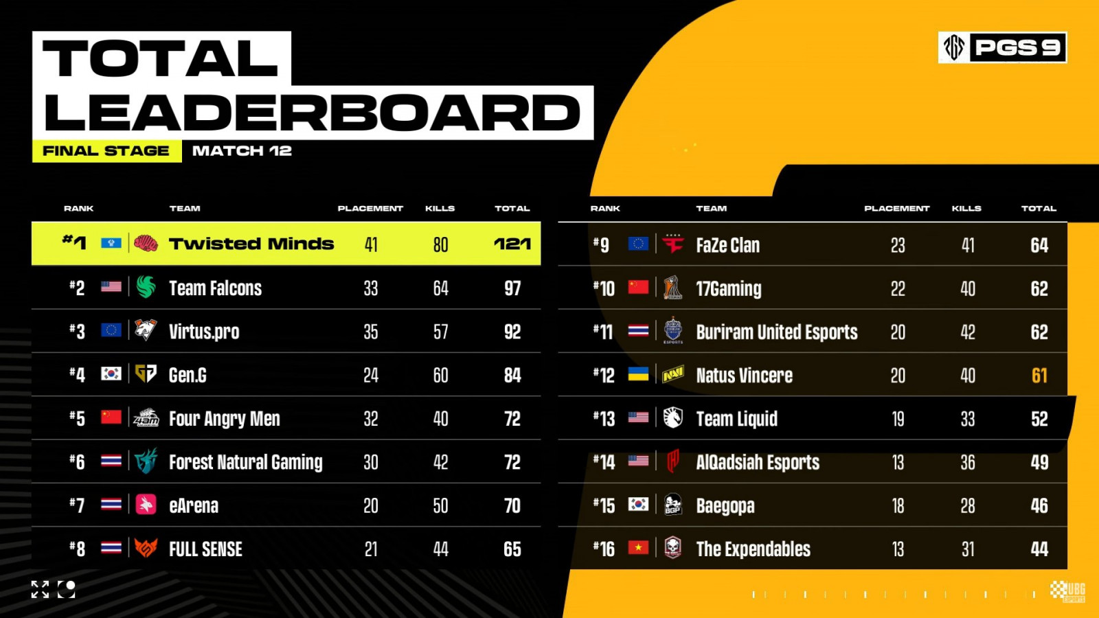 Коллектив Twisted Minds сохранил лидерство в турнирной таблице PUBG Global Series 9 по итогам второго игрового дня гранд-финала – сегодня участники отыграли еще шесть матчей.