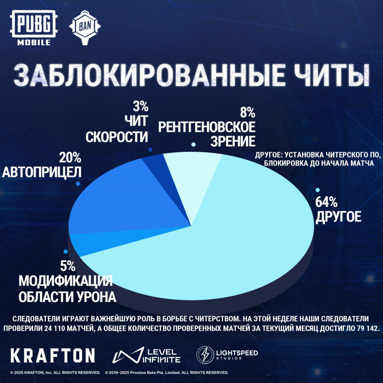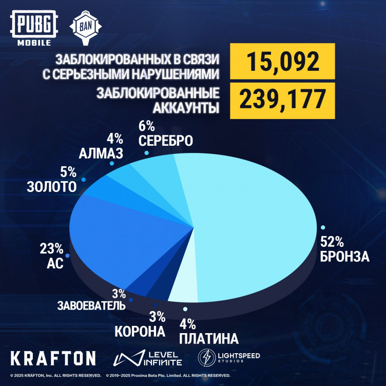 Разработчики мобильной версии PUBG забанили 239 тысяч аккаунтов читеров (и больше 15 тысяч устройств) за период с 24 по 30 октября 2025 года.