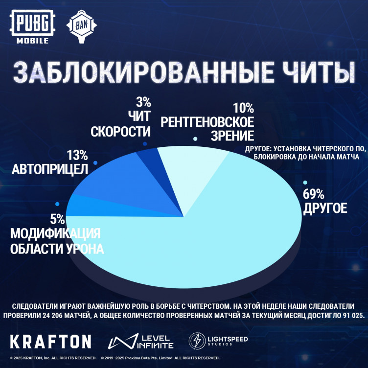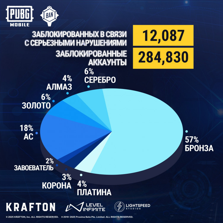 Разработчики мобильной версии PUBG забанили 284 тысячи аккаунтов читеров (и больше 12 тысяч устройств) за период с 21 по 27 ноября 2025 года.