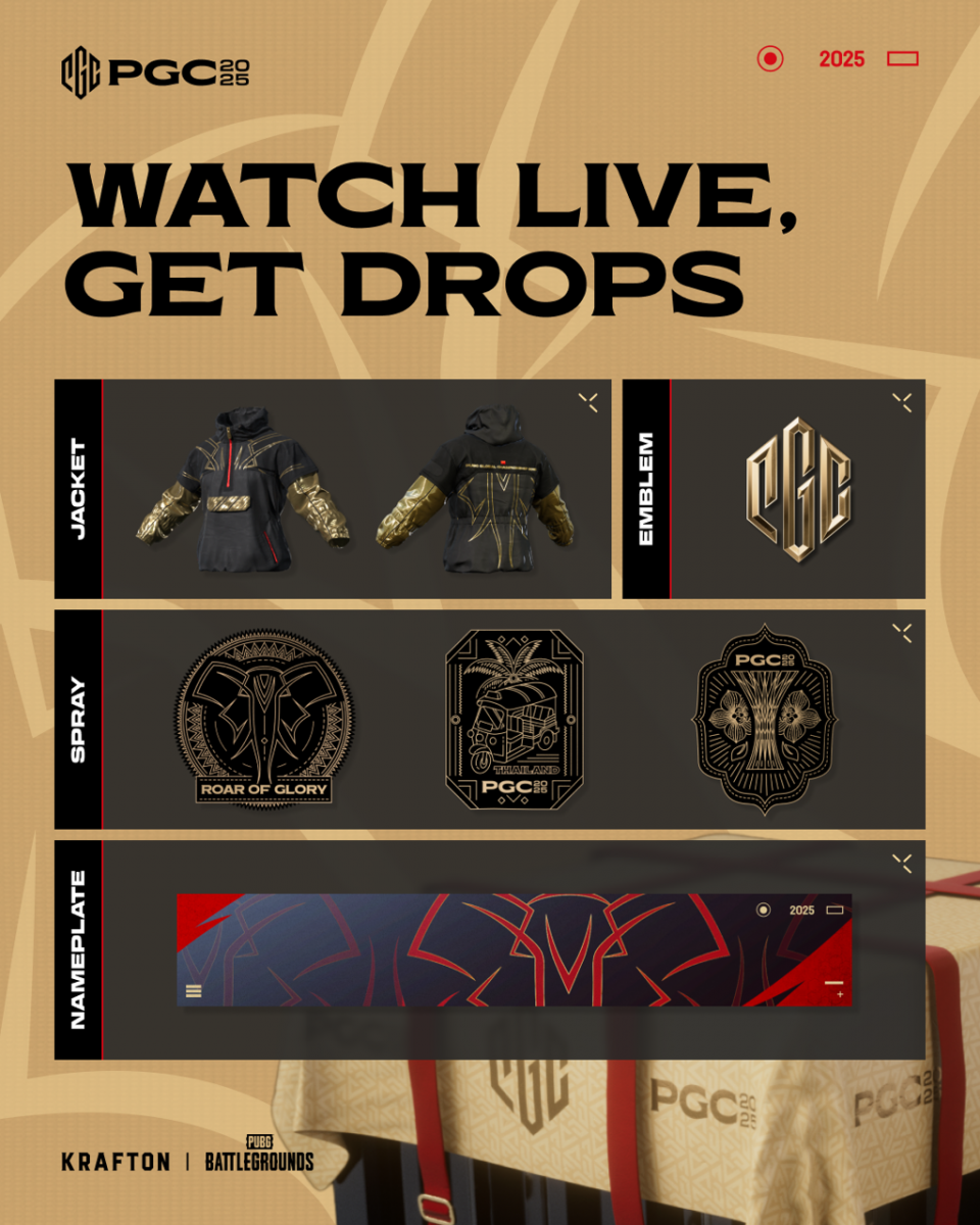 С 12 по 14 декабря зрители турнира смогут получить граффити, эмблемы, именные таблички и куртку за просмотр матчей (чтобы получить все награды, нужно отсмотреть шесть часов в течение трех дней). Twitch Drops будут доступны на официальных трансляциях чемпионата, а также на стримах партнеров PUBG: BATTLEGROUNDS.