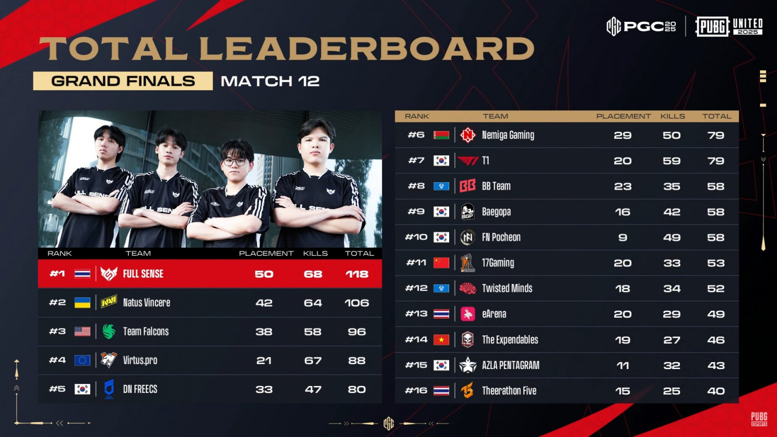 Коллектив Full Sense поднялся на первую строчку турнирной таблицы PUBG Global Championship 2025 по итогам второго игрового дня гранд-финала – сегодня участники отыграли еще шесть матчей.