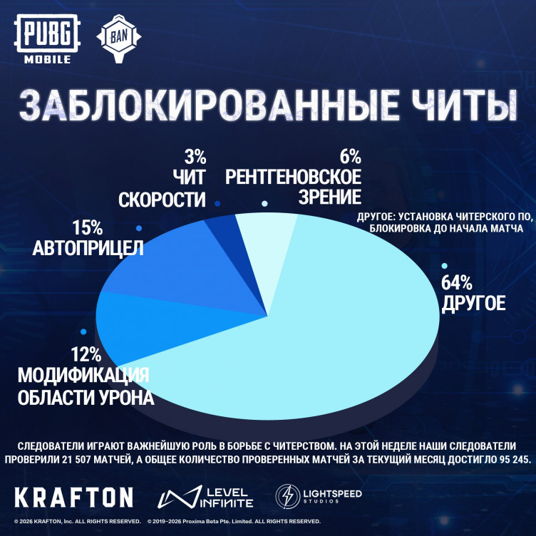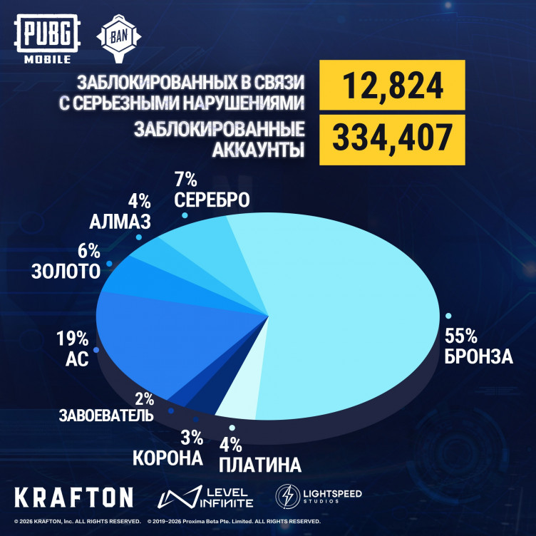 Разработчики мобильной версии PUBG забанили 334 тысячи аккаунтов читеров (и почти 13 тысяч устройств) за период с 23 по 29 января 2026 года.