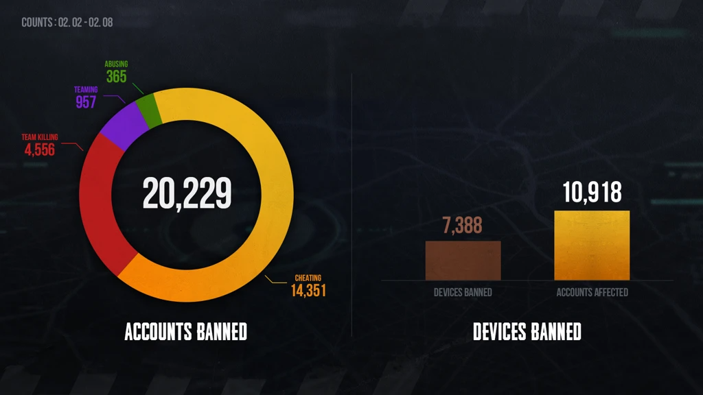 Разработчики PUBG: BATTLEGROUNDS забанили 20 тысяч аккаунтов (и более семи тысяч устройств) за период со 2 по 8 февраля 2026 года. Из них 14 тысяч аккаунтов получили бан за использование читов.
