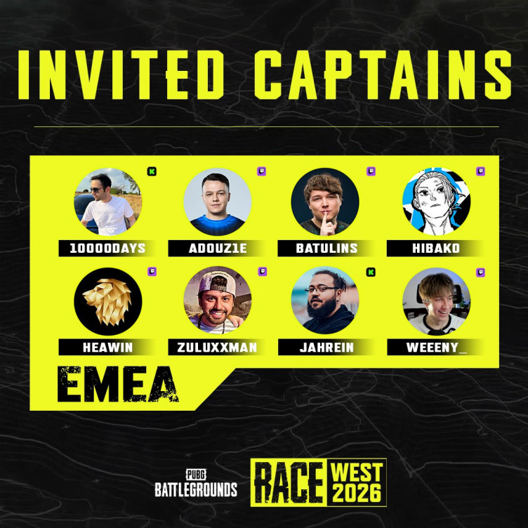 Разработчики PUBG: BATTLEGROUNDS анонсировали полный список капитанов, которые примут участие в предстоящем шоу-турнире под названием PUBG RACE 2026 между командами из Европы и Америки.