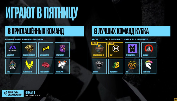 Коллектив Virtus.pro стал победителем первого финала европейского онлайн-чемпионата PUBG EMEA Championship: 2026 Spring по PUBG: BATTLEGROUNDS. Команда заработала $10 тысяч и 250 очков PGC.