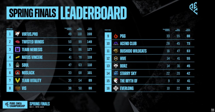 Первый финал PEC: 2026 Sping проходил с 24 по 26 апреля – команда отыграли 15 матчей. С 1 по 3 мая состоится второй плей-офф, а с 8 по 10 мая – второй финал.